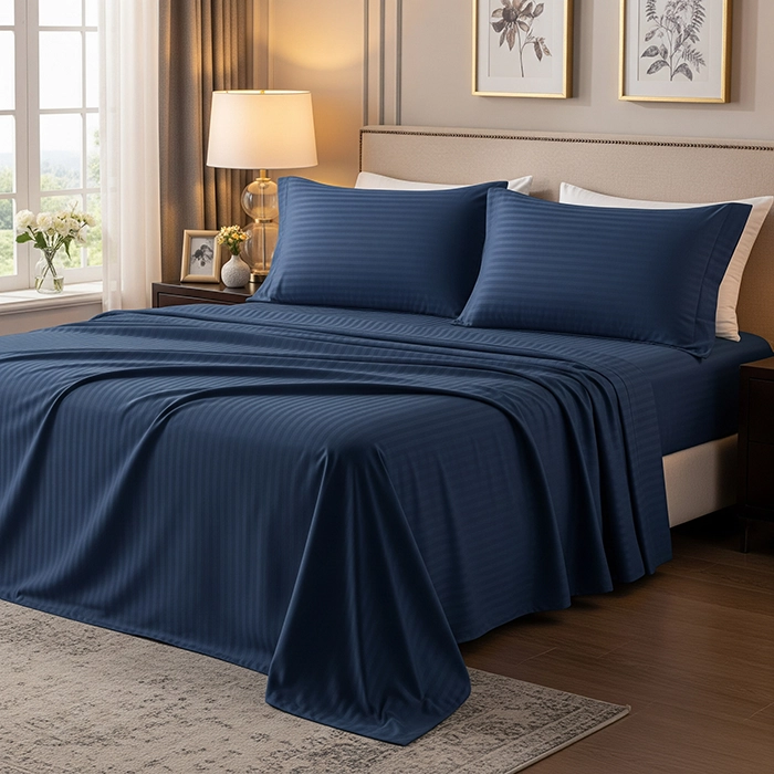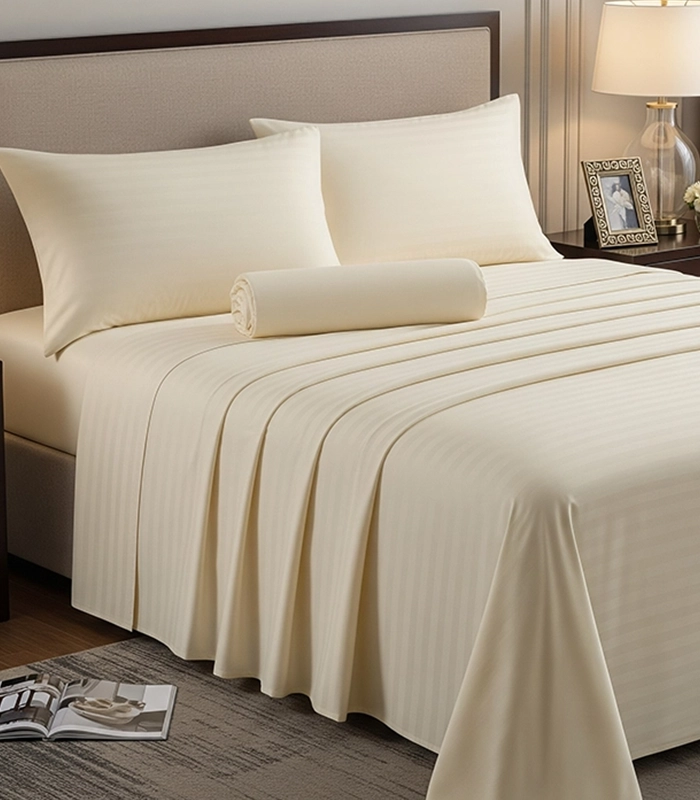 At Pioneer Home, our commitment goes beyond just selling bedsheets; we are truly dedicated to making your sleep experience better. Our Luxury Collection Bed Sheet Set, crafted from Oeko-Tex certified 300-thread-count premium cotton with an elegant dobby stripe, perfectly embodies our promise of unmatched comfort, durability, and sophisticated style. We believe that true luxury should be accessible, and our transparent approach to bedsheets in Dubai price ensures you receive exceptional value for an investment in your well-being.