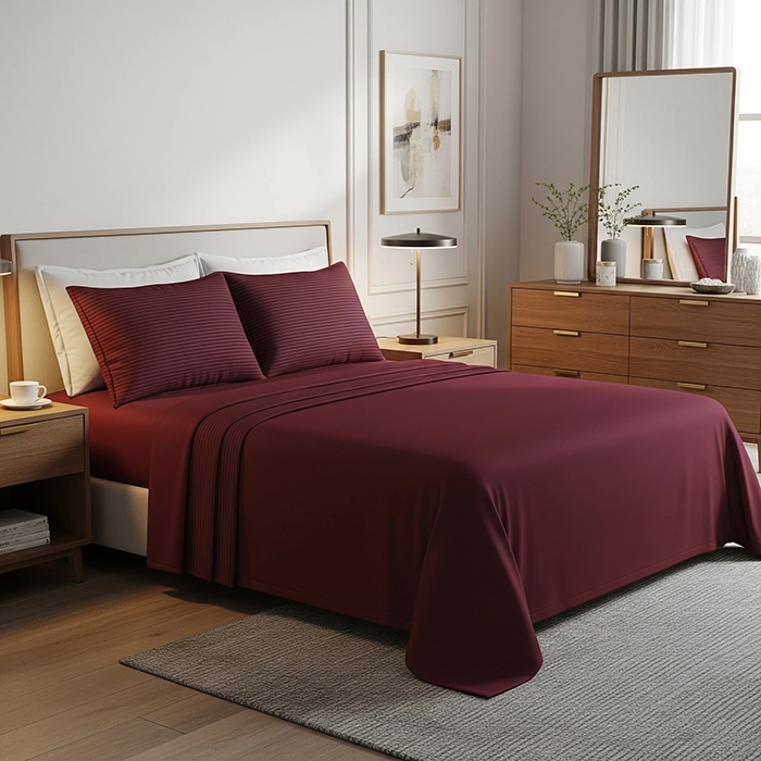 In addition to these, Pioneer Home features a Dobby Stripe Weave in its Luxury Collection. This is a decorative weave that creates a subtle, tone-on-tone stripe pattern directly within the fabric. It offers the smooth comfort you’d expect from a sateen-like feel, while also adding a timeless design element that beautifully enhances any bedroom décor without the need for printed dyes.